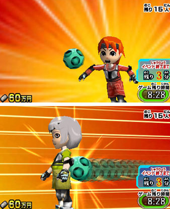 - フジテレビ系列のサバイバルゲーム番組「battle for money 戦闘中」を題材にしたバトルボールアクション。出演者(プレイヤー)がバトルボールと呼ばれる球を使って相手を撃破し、互いの持ち金(賞金)を奪い合う。制限時間内で最後まで勝ち残った1人が賞金を獲得するのがルールだ。プレイヤーをサポートする戦闘アンドロイド「忍」(シノビ)やアイテムは、番組でおなじみのものはもちろん、ゲームオリジナルの「くノ一」やゲームならではの巻物なども登場する。ステージは江戸城やグランドキャニオンなど10種類。一度クリアしたステージは強敵が登場するハードモードでプレイ可能。また、ダウンロードプレイ対応で最大6人での同時対戦ができる。