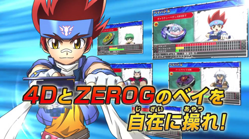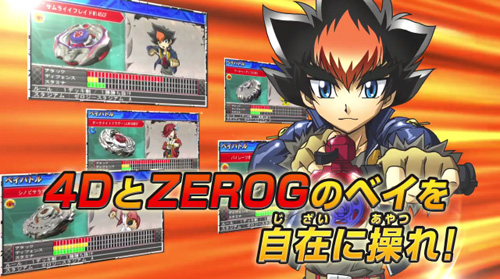 - タカラトミーから発売された現代版ベーゴマ「ベイブレード」を再現したデジタルベイバトル。アニメ「メタルファイト ベイブレード」の3期「4D」と、その7年後を描いた4期「ZEROG」を題材としている。アニメ終了から1年、ゲームとしては3年ぶりの新作だ。1人用の「ベイストーリーモード」はマップ、アドベンチャー、ベイバトルを繰り返して進行。4DモードとZEROGモード、2つのストーリーでそれぞれベイパーツを収集し、世界チャンピオンを目指す。登場するパーツは700種類以上。「ベイバトルモード」にはデータ対戦、ワイヤレス対戦、サバイバルの3種類がある。AR機能を使ったARスタジアム対戦や、3DS本体を動かしてのベイシュートといった遊び方もできる。