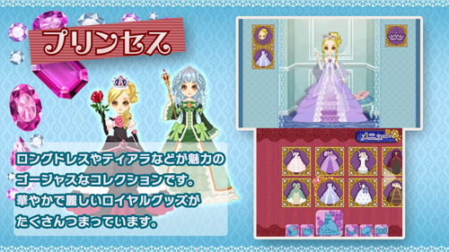 - TVアニメにもなった女児向けアーケードゲームの3DS版。シリーズ第4弾となる本作のコンセプトは「歌えるリズムゲーム」。21人の登場人物の中から好きなキャラを選び、ライブやドラマなどの仕事をこなしてトップアイドルを目指す。ボードゲームでアイドルの頂点を目指す「トップアイドルロード」では、止まったマスで起こるイベントでリズムゲームを成功させるとファンが増える。リズムゲームのスコアによってレベルが上がり、マップを移動できる範囲が広がっていく。また、ボード上にいる他のアイドルを仲間にすれば、チームとして一緒にお仕事や大会に参加することも。ほかにも、ゲーム中に集めた16曲のステージと581種類のドレスを自由に選んでリズムゲームを楽しむ「フリープレイ」、JOYSOUNDの機能を搭載したカラオケで歌える「アイカラ」、好きなステージを何度も見られる「PV」などのモードが用意されている。