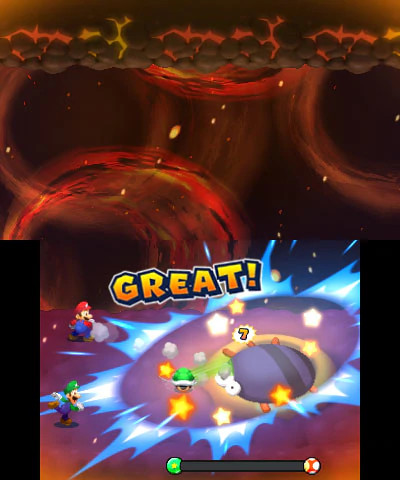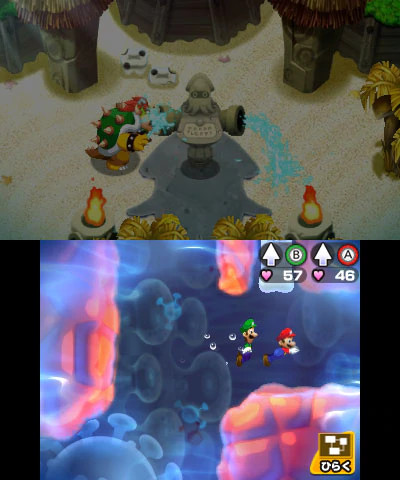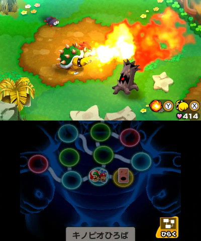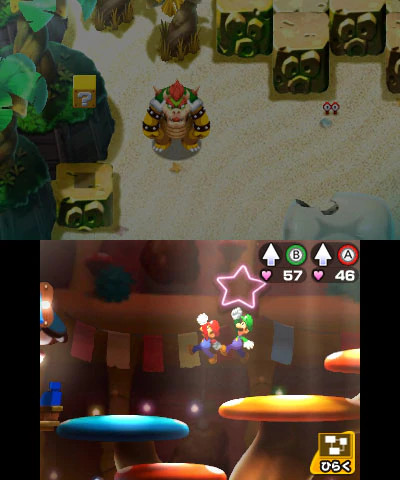 - 2009年に発売されたニンテンドーDSソフト「マリオ&ルイージRPG3!!!」がパワーアップしてニンテンドー3DSに登場。ナゾの病「メタコロ病」をめぐって、マリオとルイージ、さらにはクッパまでもが大冒険を繰り広げる。マリオとルイージはクッパの体の中を、クッパは豪快なアクションでキノコ王国を突き進む。クッパが水を飲むと、体の中にいるマリオたちは泳いで進めるようになるといった仕掛けも。マリオとルイージが力を合わせるブラザーアクション、そしてクッパの操作をうまく切り替えながら道を切り開いていこう。アクションが苦手でもプレイできるように、敵の攻撃がよけやすくなる「アシスト」や、ダメージを軽減できる「きんきゅうガード」機能も搭載。ボリュームたっぷりの新モード「クッパJr.RPG」は、最強軍団を編成して敵と戦うボコスカバトル。マリオやクッパの活躍の裏側で何が起きていたのかを、クッパの息子の視点で描く。